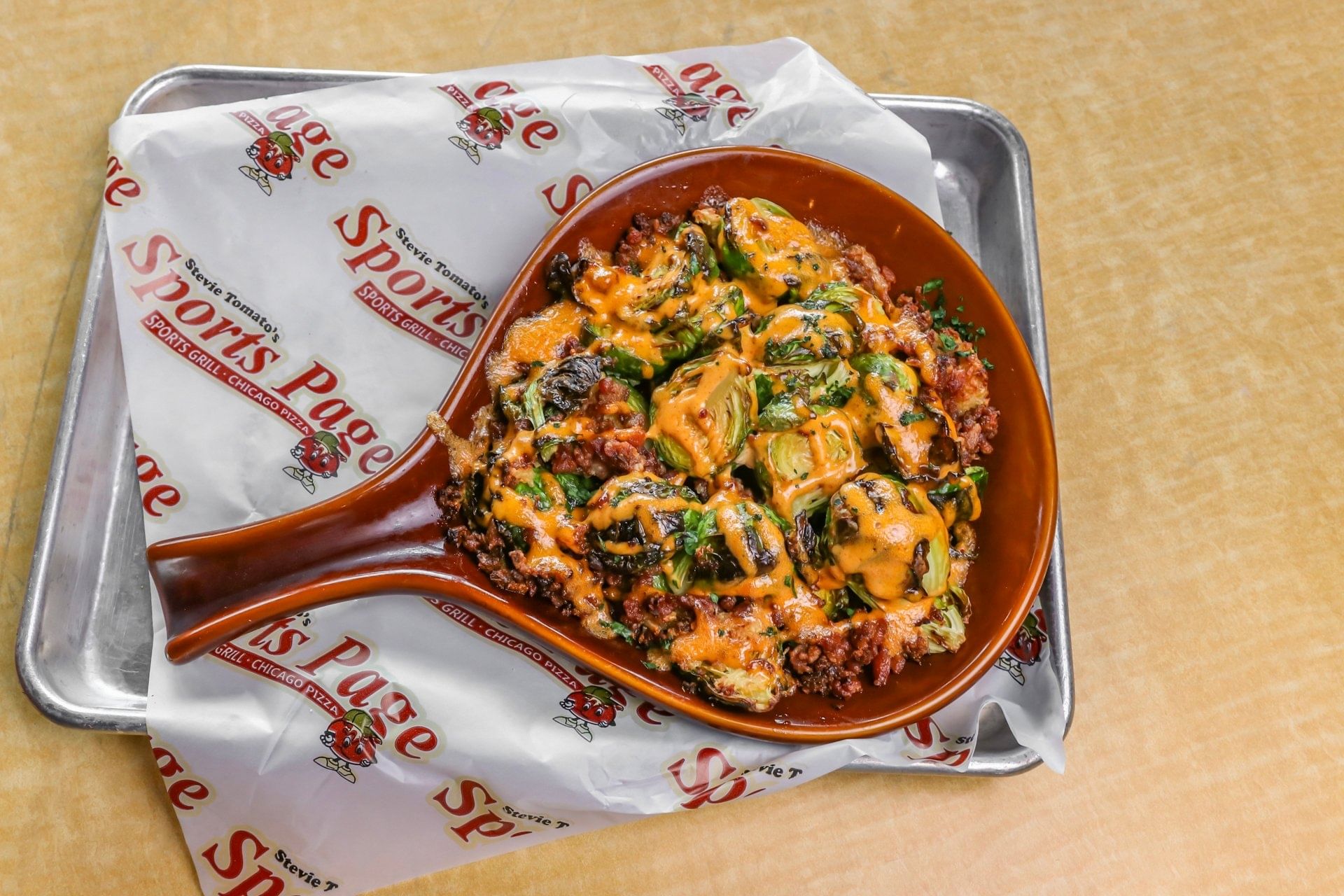 Brussel sprouts topped with bacon, olive oil and garlic topped with house-made chipolte ranch