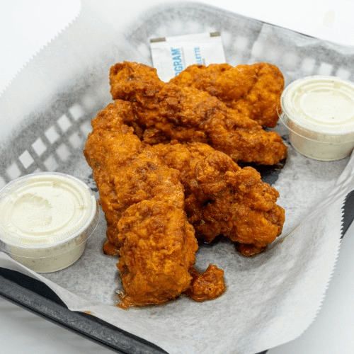 Fried, blackened chicken breast, bacon, pepper jack cheese, tomato and a side of house-made chipotle ranch