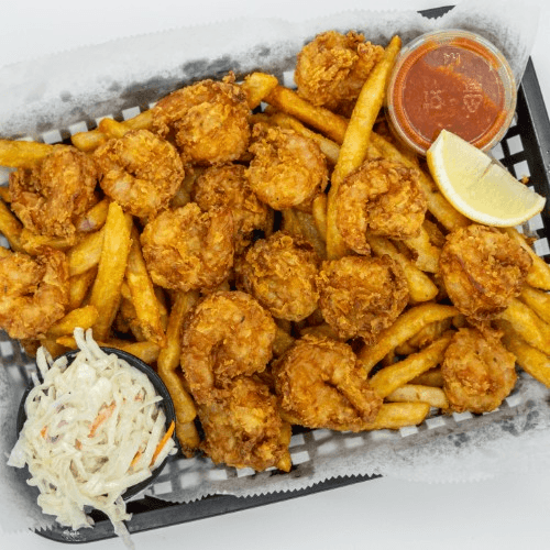 Lightly breaded shrimp, cocktail sauce, fries and coleslaw